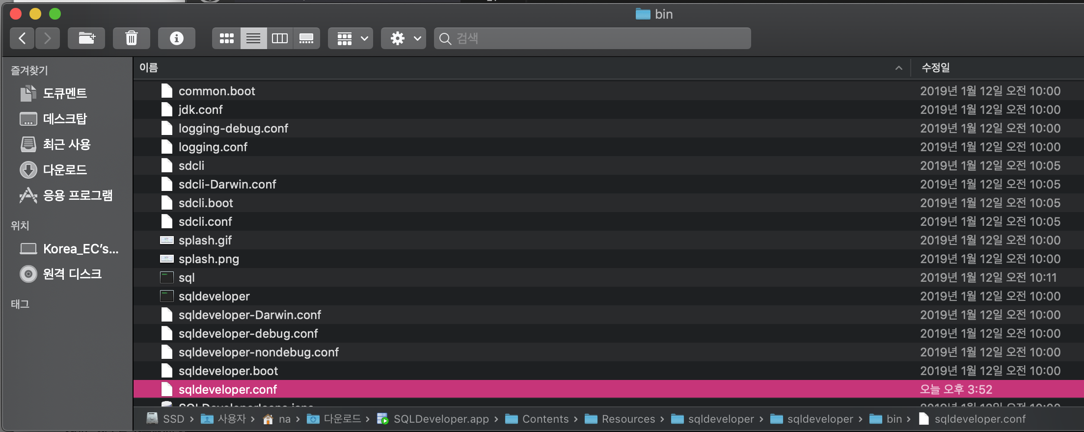 2. Contents > Resources > sqldeveloper > sqldeveloper > bin > sqldeveloper.conf 파일 오픈
